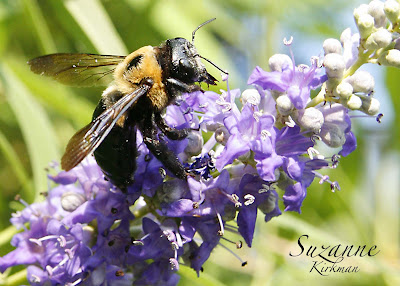I was trying to get a good shot of a bee and almost gave up because they seemed to be to fast for me, then "Grandpa" bee came buzzing by. He is like twice as big as the other bumble bees and moved a bit slower. Gave me a great opportunity for a good shot.